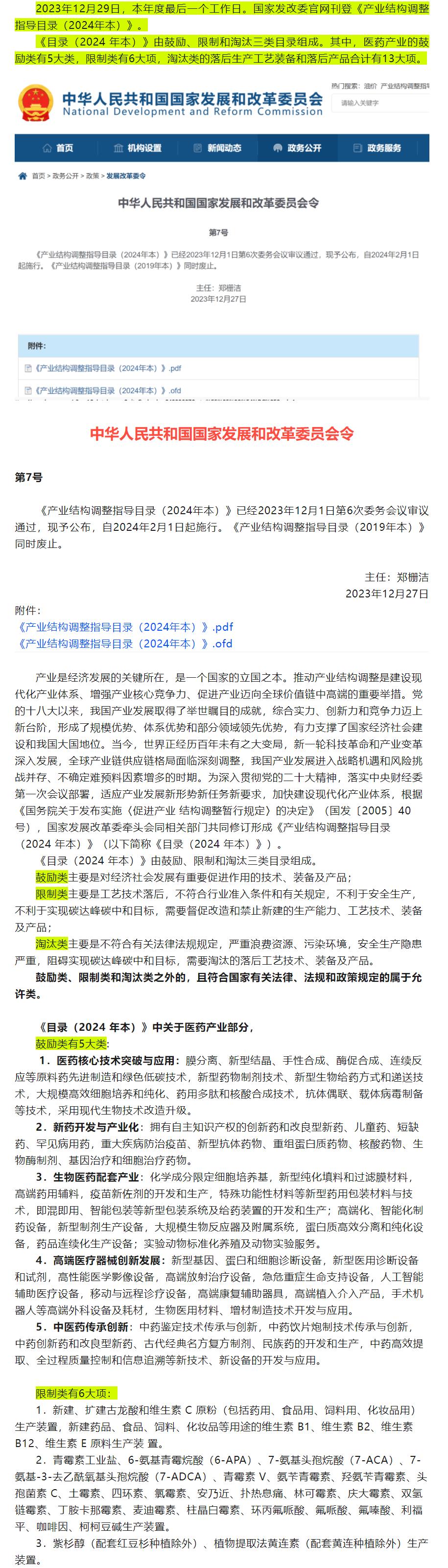 点击"下方链接"查看"产业结构调整指导目录(2024年本)"